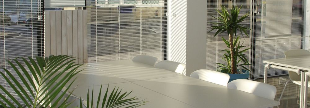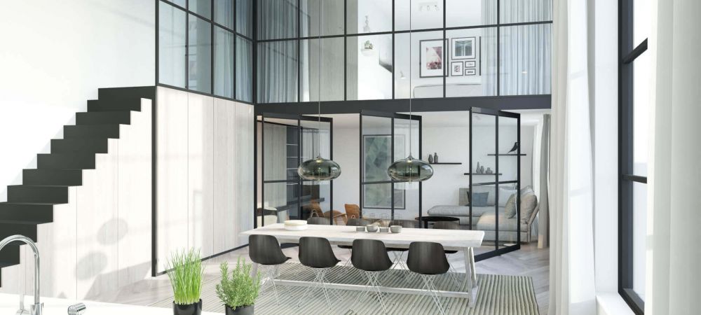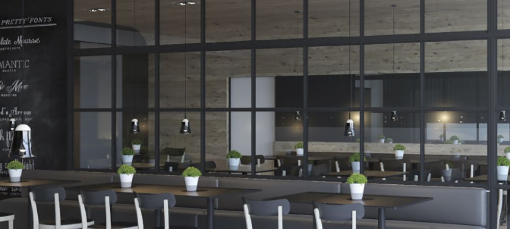La tendencia actual en las divisiones interiores acristaladas viene marcada por sistemas metálicos entramados en color negro, normalmente realizados en acero por talleres especializados.