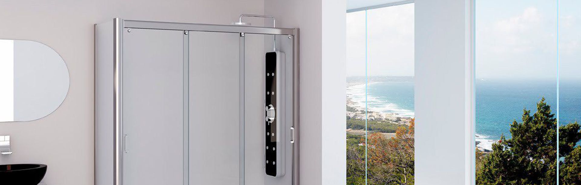 Centroalum ha desarrollado este sistema minimalista empleado perfilería de aluminio con gran variedad de soluciones personalizadas para los puntos de paso: puertas correderas, abatibles o pivotantes, combinados con paneles fijos.